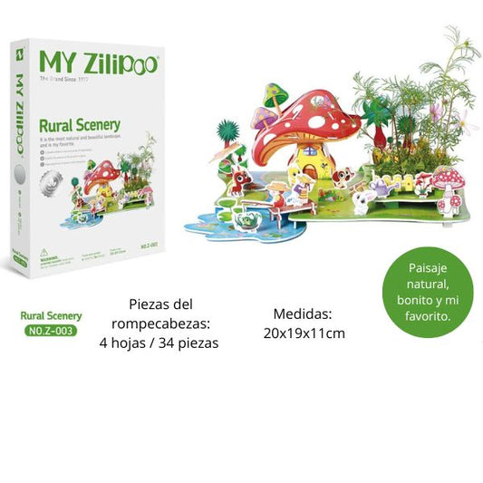 🐮 Rural Scenery – Casita de Cartón para Armar + Mini Jardín 🌱